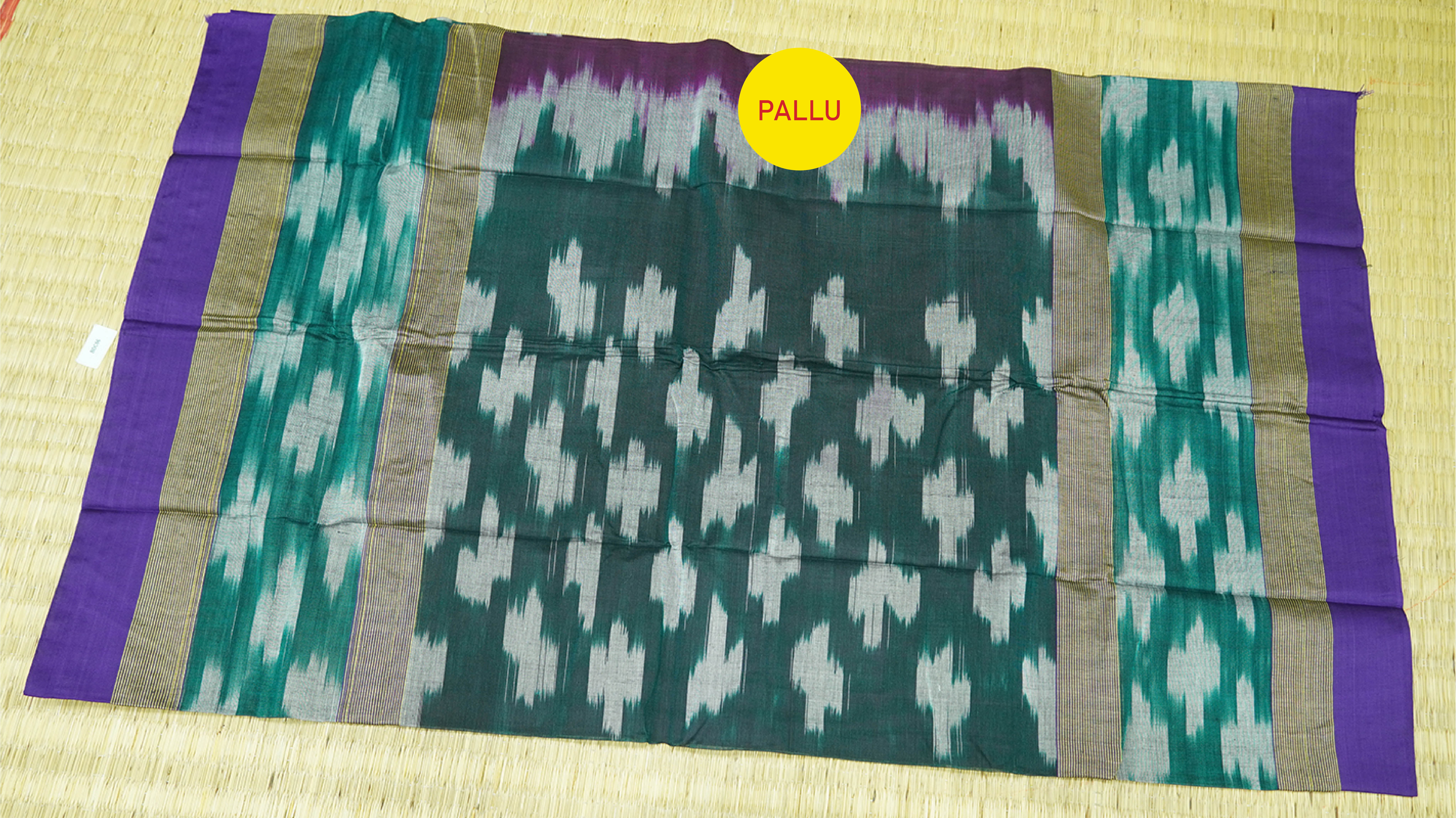 Handloom double ikkat pochampally 120s count pochampally cotton saree with running blouse. The Fabric is Very Soft & Smooth.
