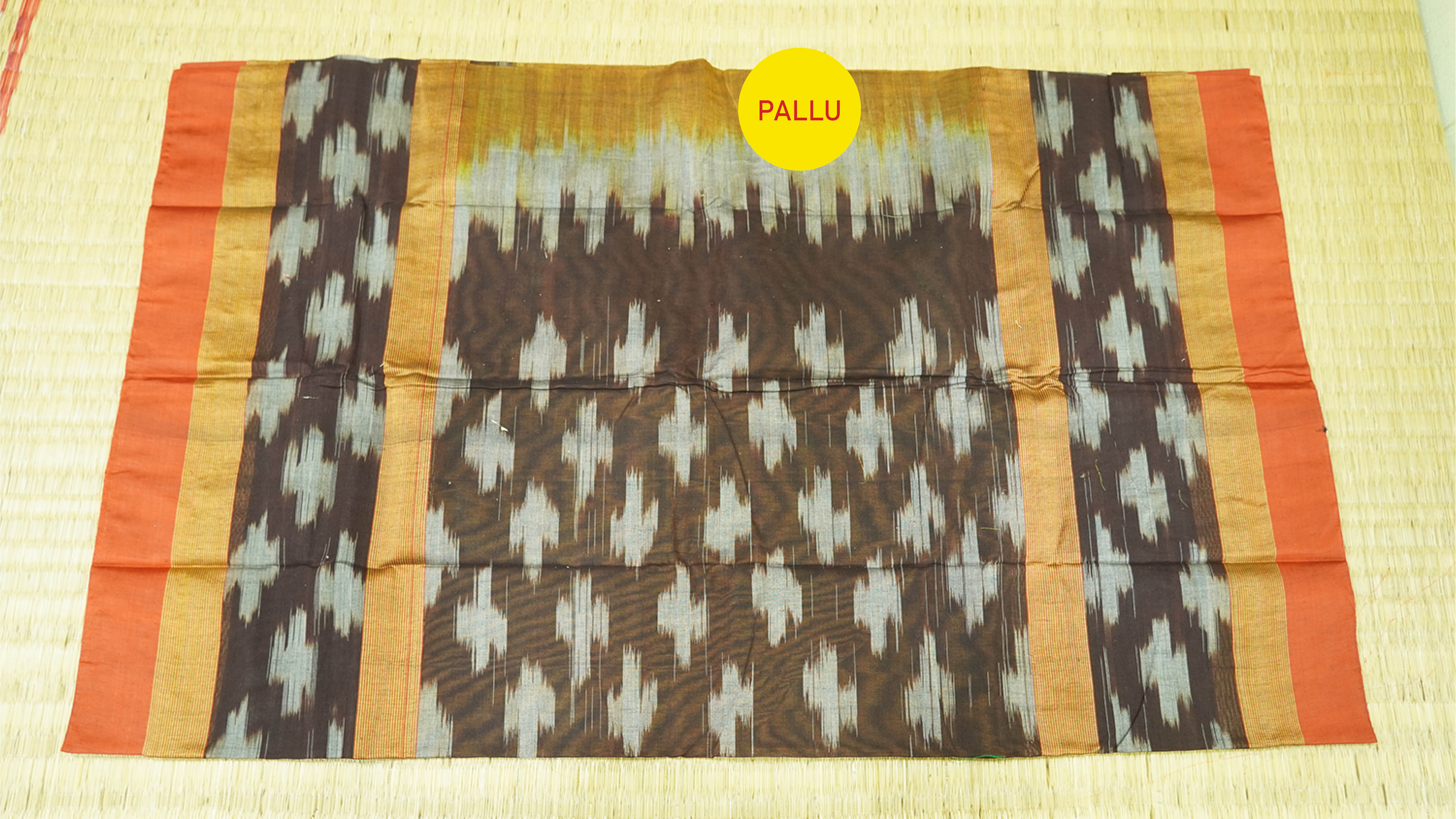Handloom double ikkat pochampally 120s count pochampally cotton saree with running blouse. The Fabric is Very Soft & Smooth.