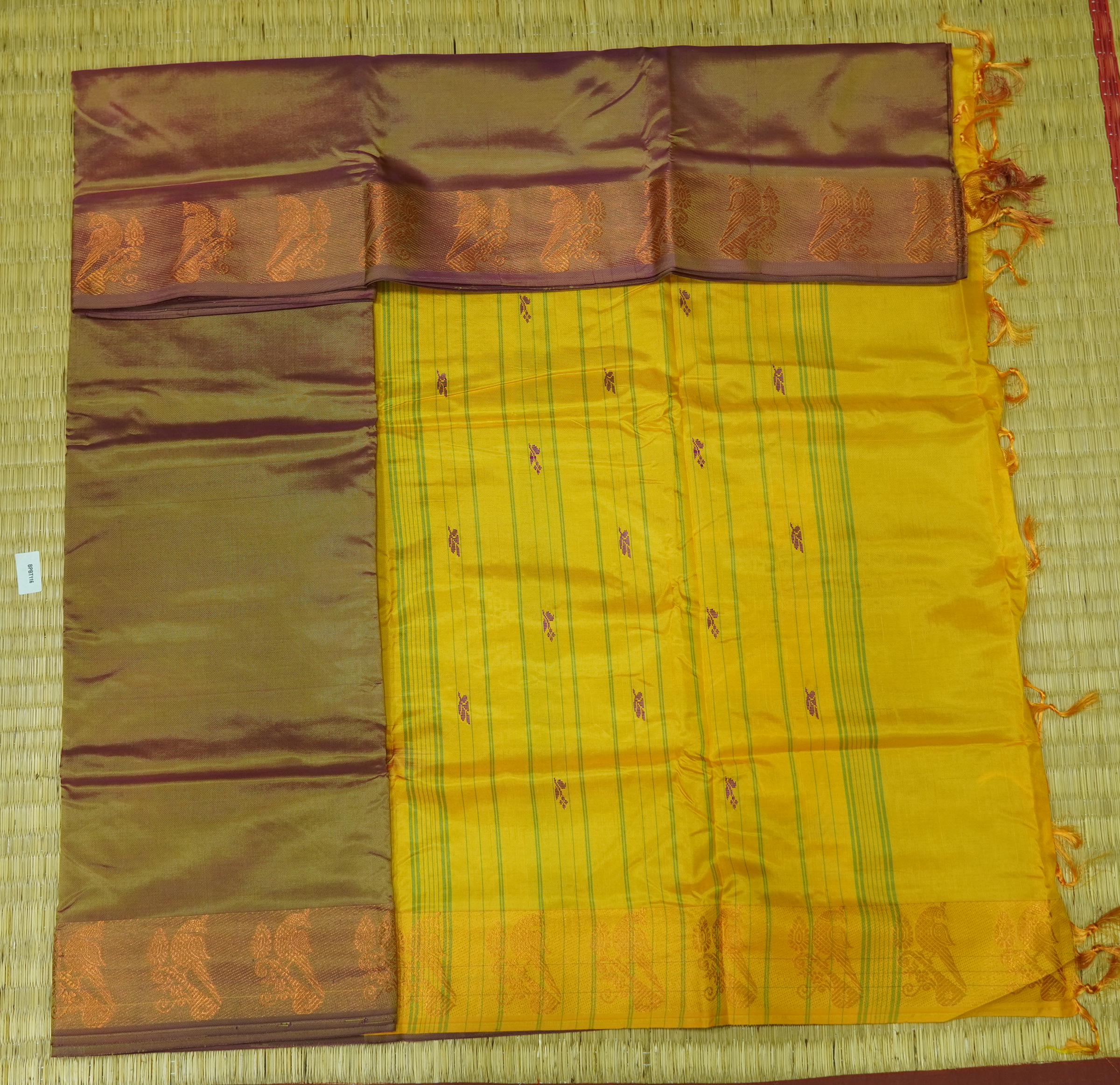 Banana Pith (Vazhai Pattu Saree) is Purely Handloom & Traditional Saree. The Fabric is Very Soft & Smooth. Saree Doesn't Have Blouse. These are Exclusive Sarees and Rare Collection.