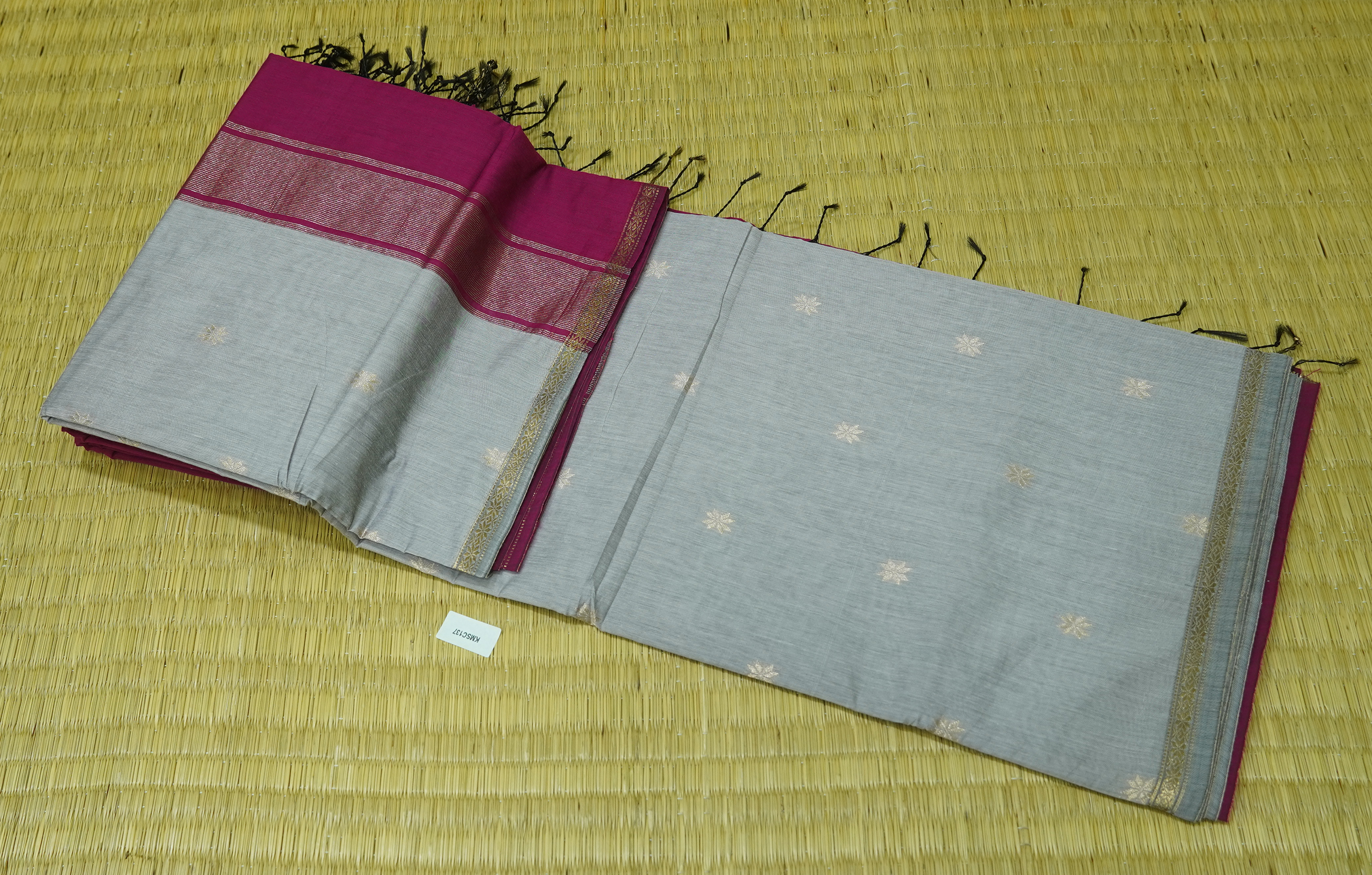 Maheswari Silk Cotton Sarees are Zari Woven Butta Sarees with Very Thin Border. Maheswari Silk Cotton Sarees are Very Soft and Light Weighted Sarees.