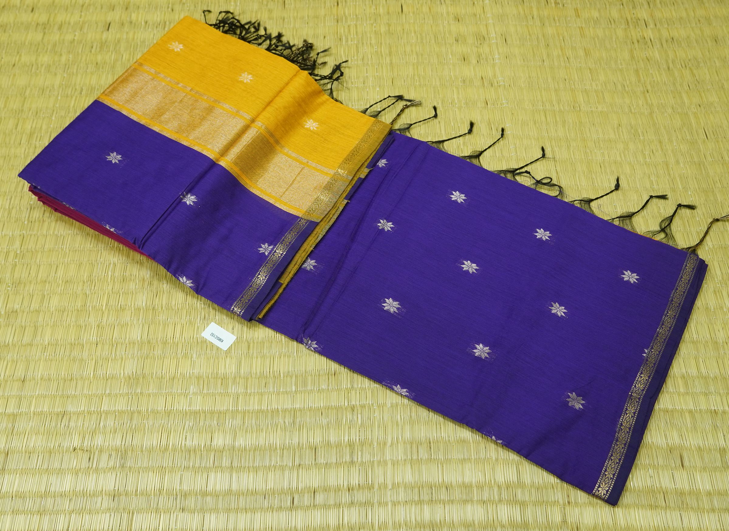 Maheswari Silk Cotton Sarees are Zari Woven Butta Sarees with Very Thin Border. Maheswari Silk Cotton Sarees are Very Soft and Light Weighted Sarees.