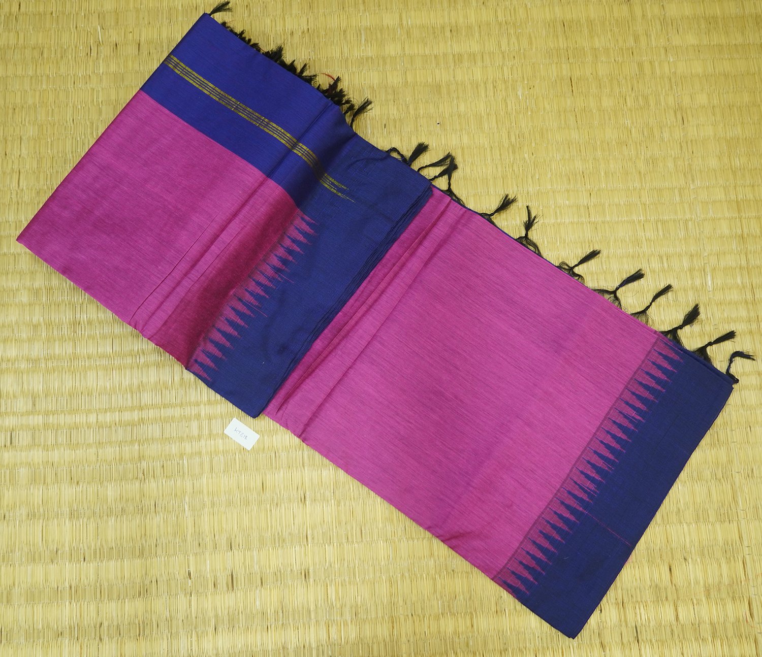 Soft Kalyani cotton saree with temple border with contrast pallu and blouse. The Fabric is Very Soft & Smooth.