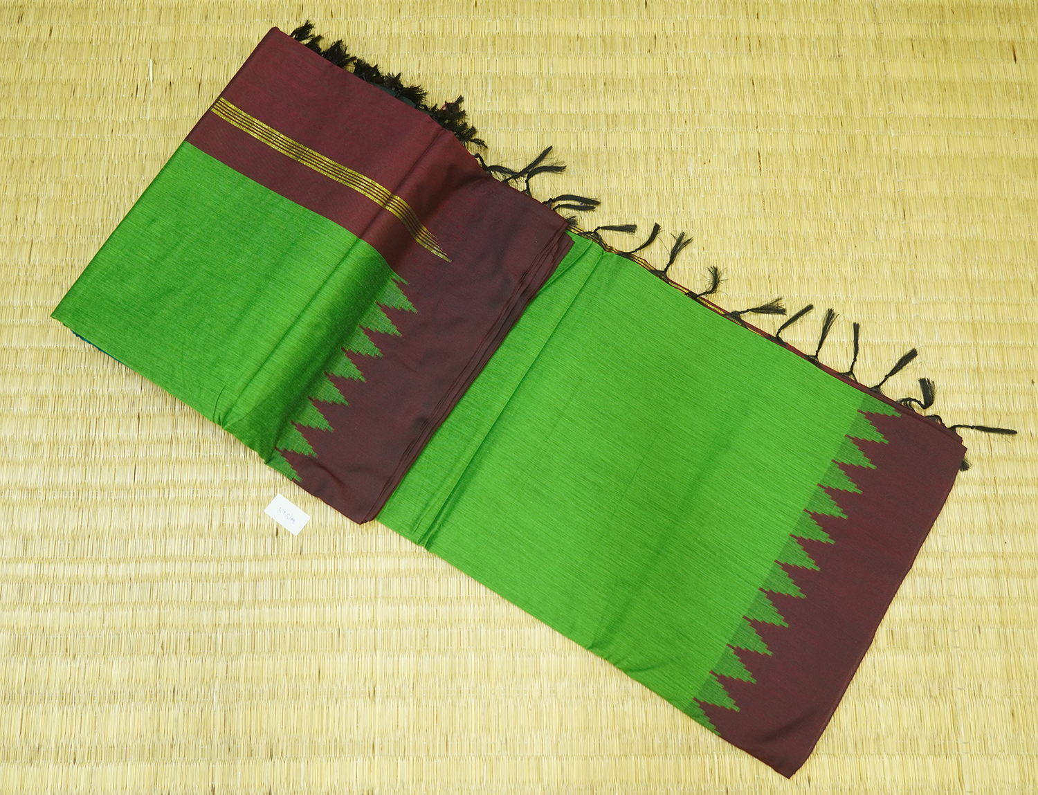 Soft Kalyani cotton saree with temple border with contrast pallu and blouse. The Fabric is Very Soft & Smooth.