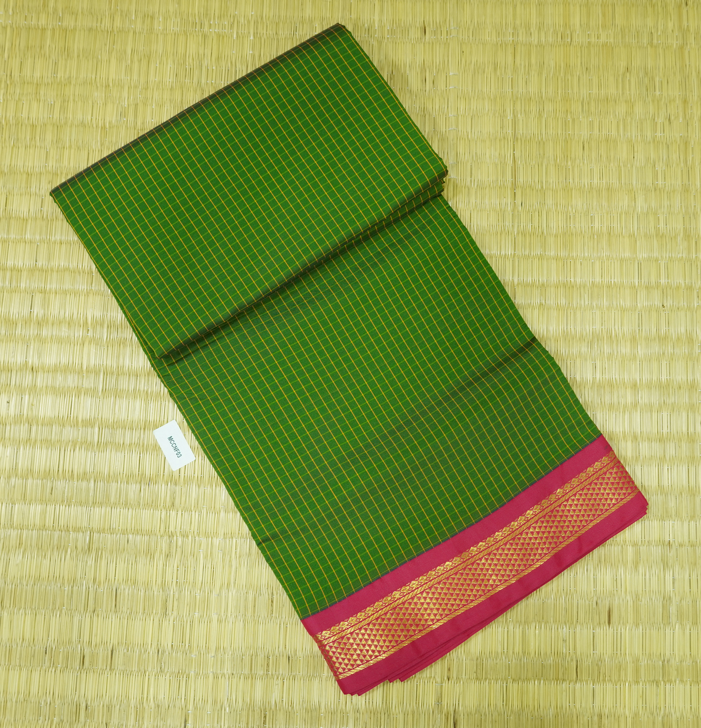 Madisar 9.5 Yards Semi soft silk saree checked with zari border