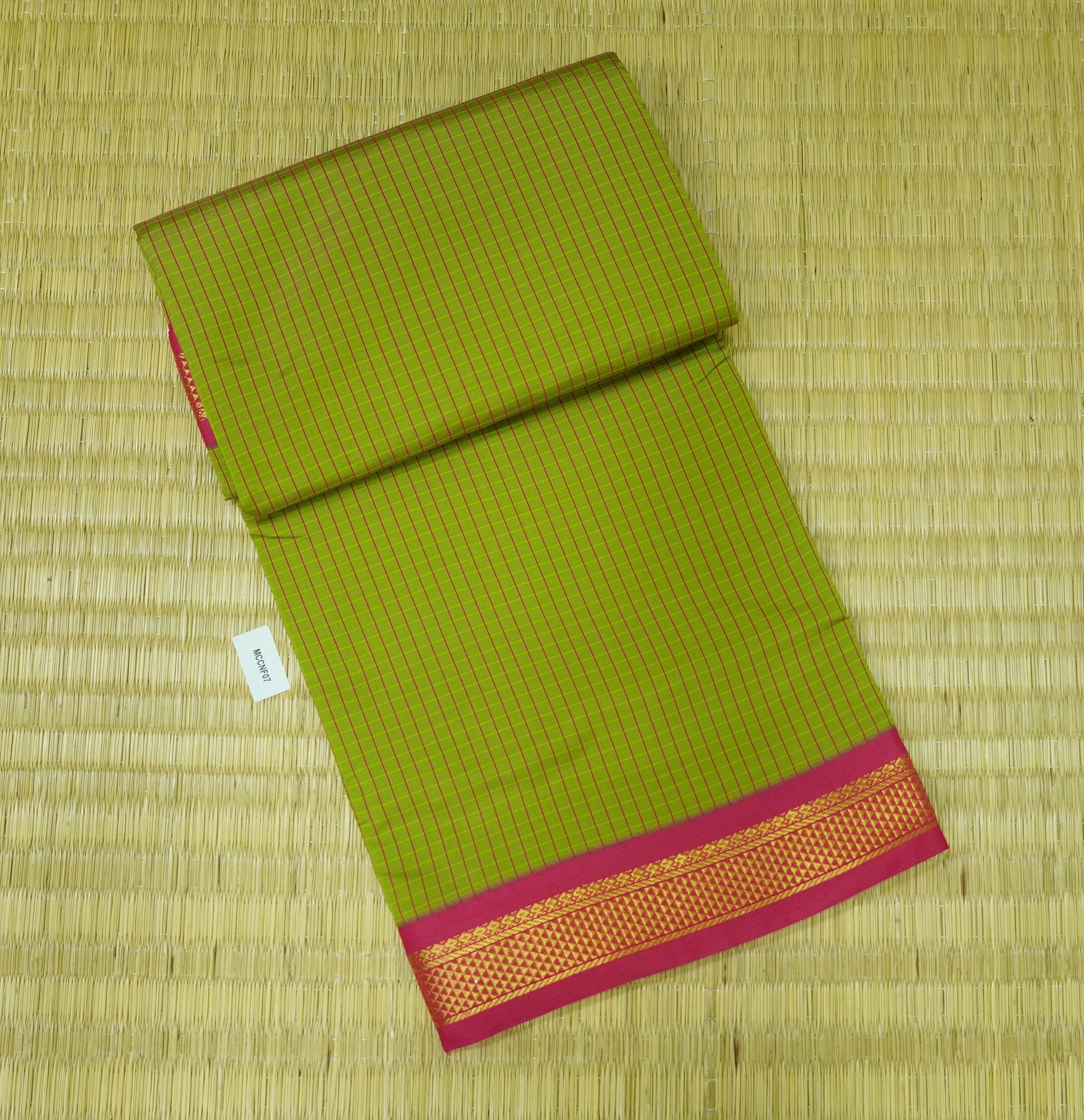 Madisar 9.5 Yards Semi soft silk saree checked with zari border