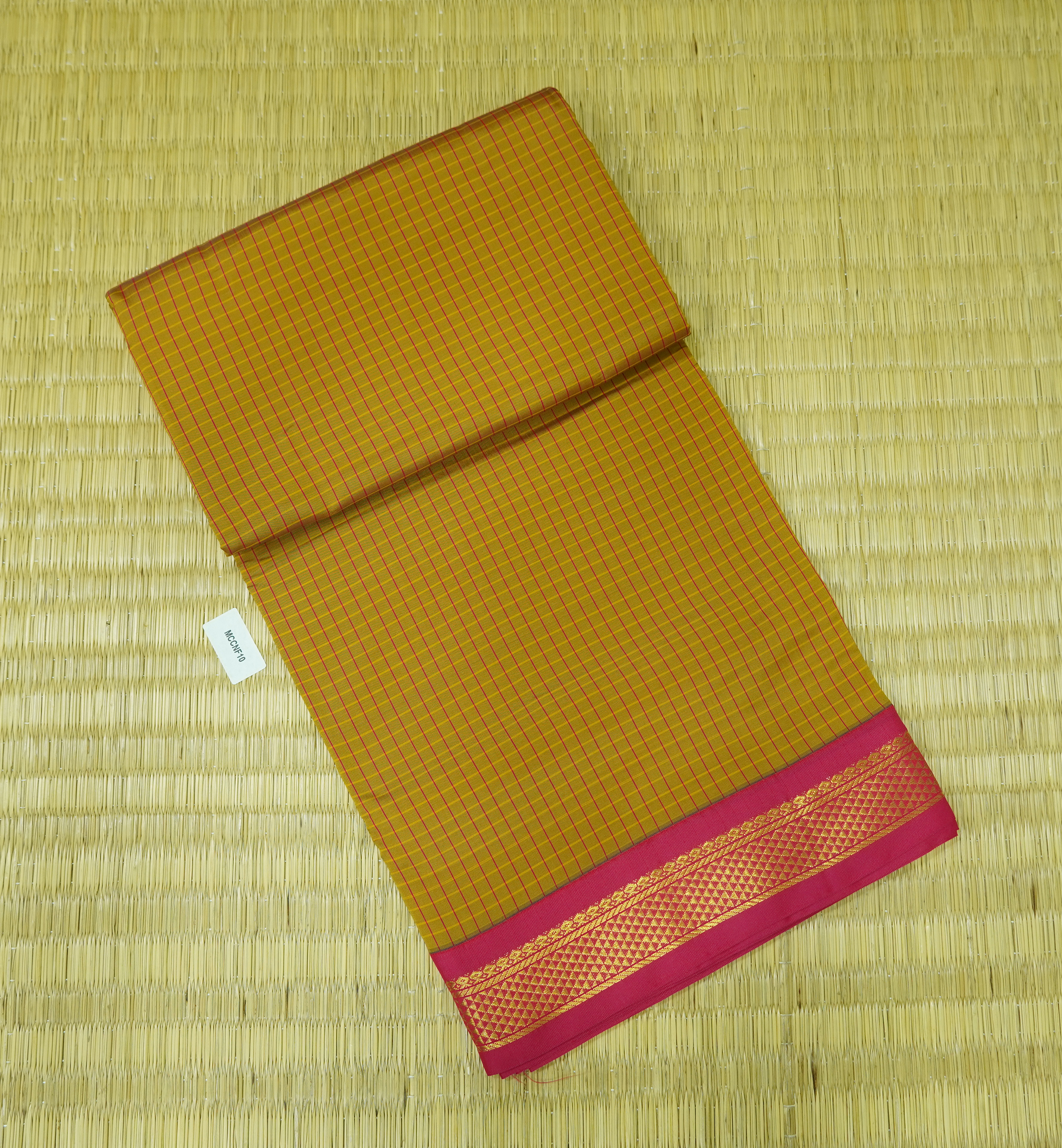 Madisar 9.5 Yards Semi soft silk saree checked with zari border