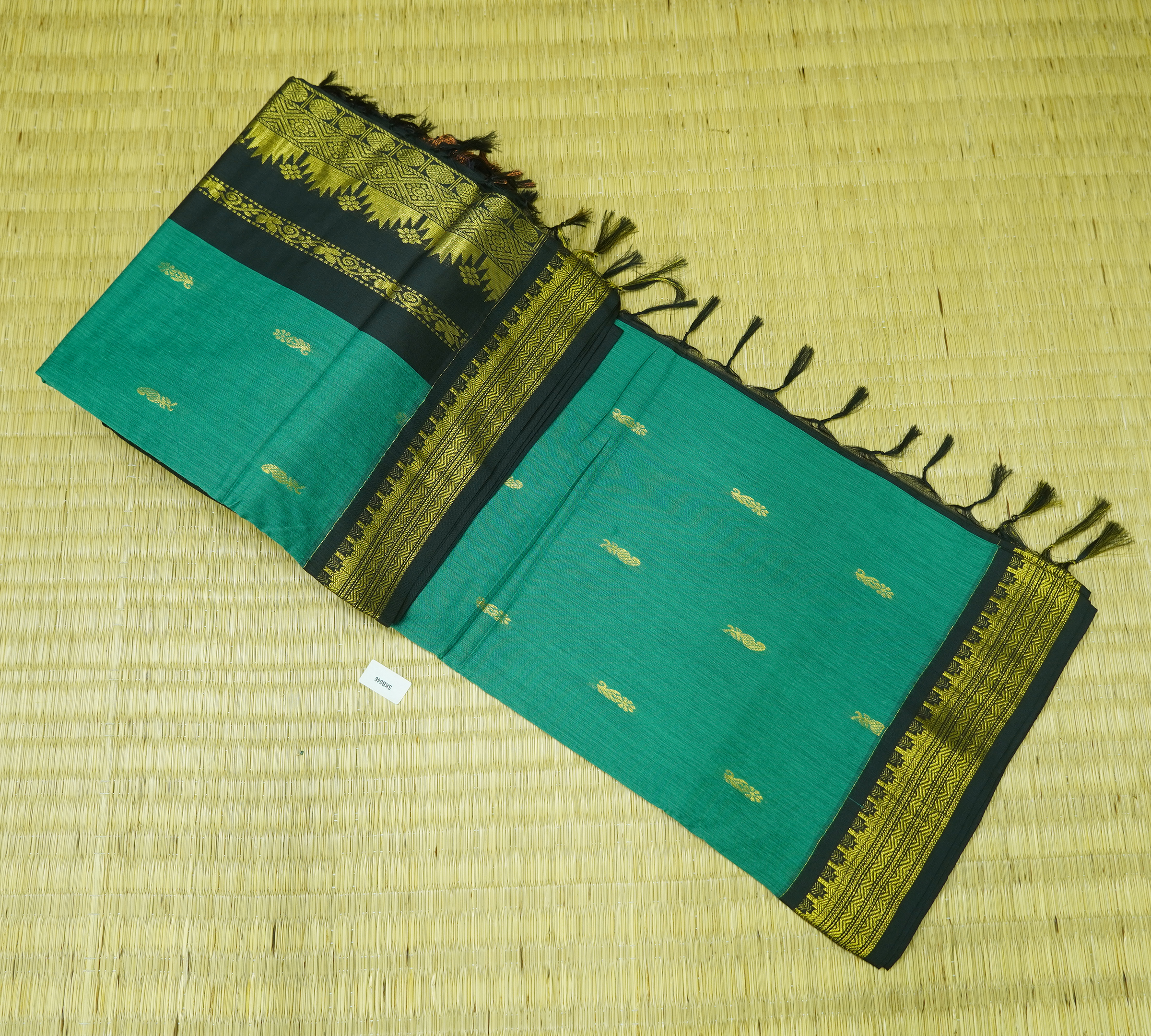 Kalyani Cotton Saree is Purely a Traditional Saree. Saree will Have Zari Buttas all over the Body. Saree Comes with Contrast Pallu & Blouse.