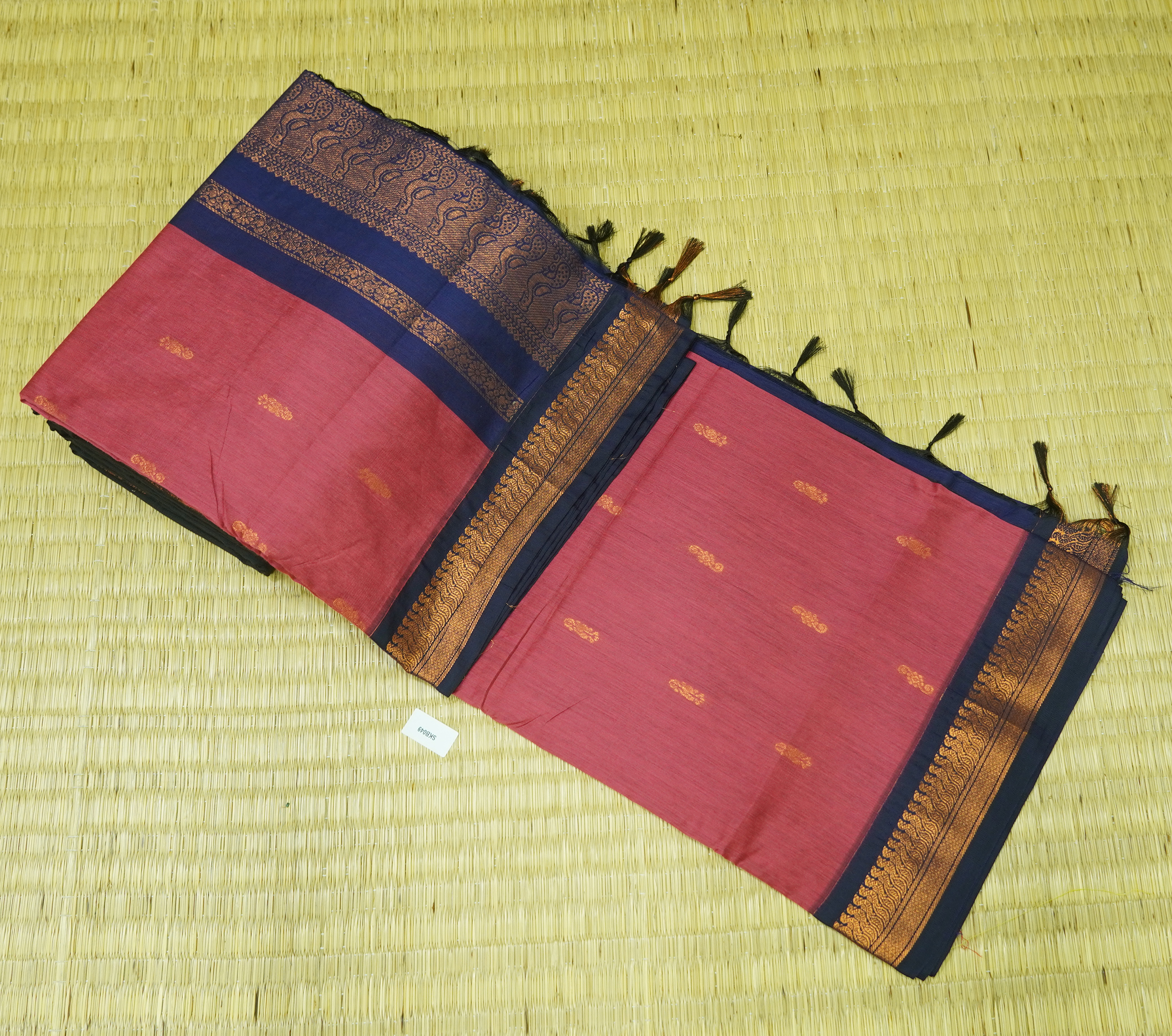 Kalyani Cotton Saree is Purely a Traditional Saree. Saree will Have Zari Buttas all over the Body. Saree Comes with Contrast Pallu & Blouse.