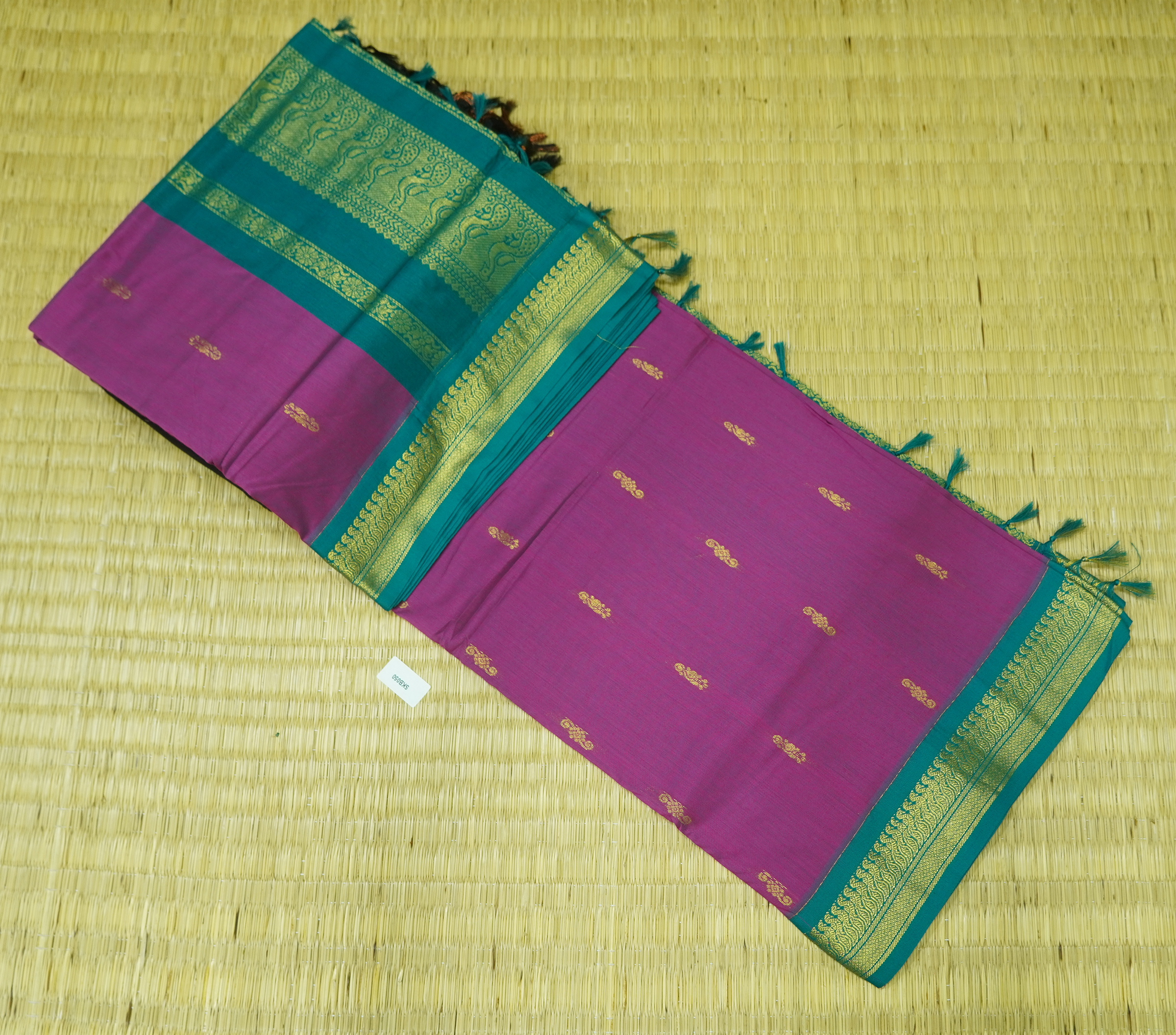 Kalyani Cotton Saree is Purely a Traditional Saree. Saree will Have Zari Buttas all over the Body. Saree Comes with Contrast Pallu & Blouse.