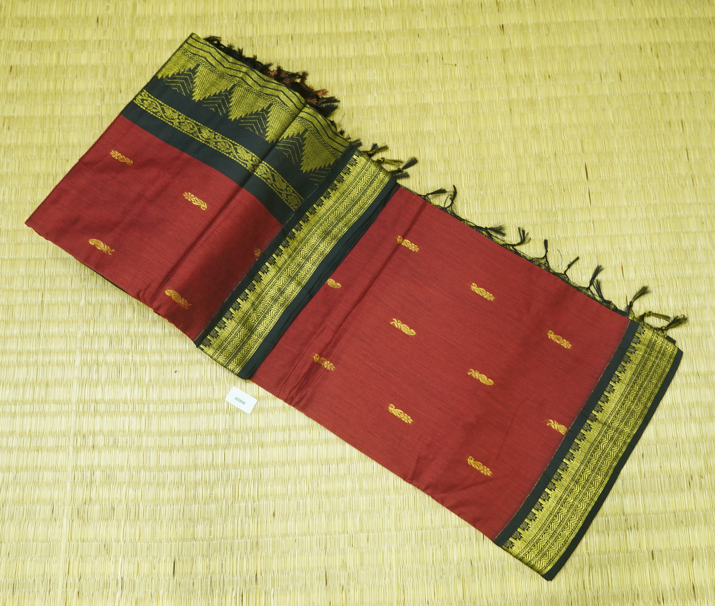 Kalyani Cotton Saree is Purely a Traditional Saree. Saree will Have Zari Buttas all over the Body. Saree Comes with Contrast Pallu & Blouse.