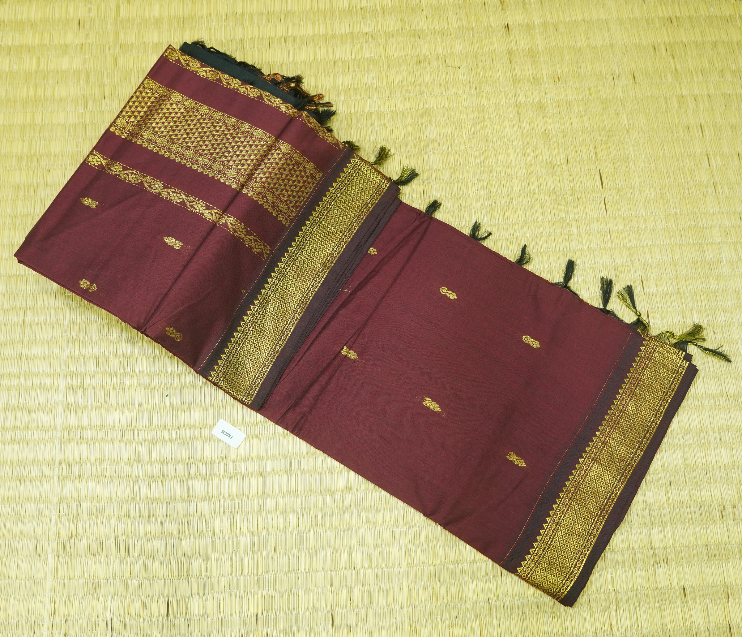 Kalyani Cotton Saree is Purely a Traditional Saree. Saree will Have Zari Buttas all over the Body. Saree Comes with Contrast Pallu & Blouse.