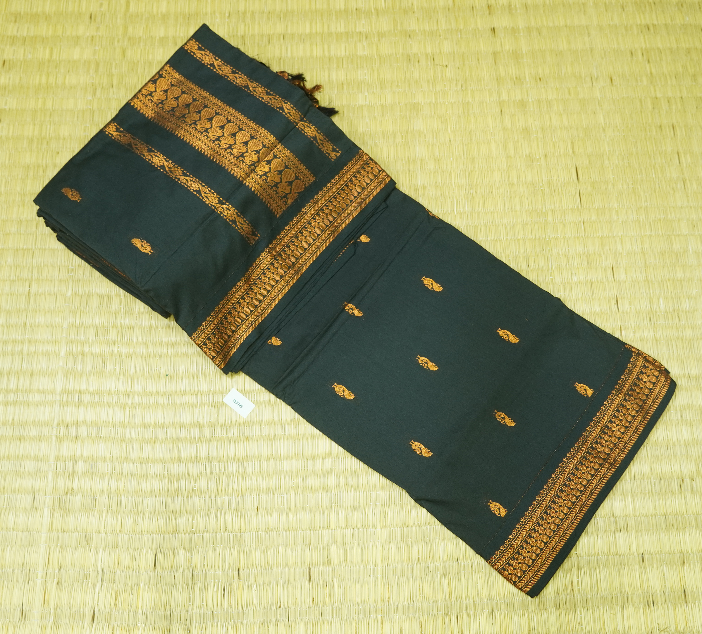 Kalyani Cotton Saree is Purely a Traditional Saree. Satee will Have Zari Buttas all over the Body. Saree Comes with Contrast Pallu & Blouse.