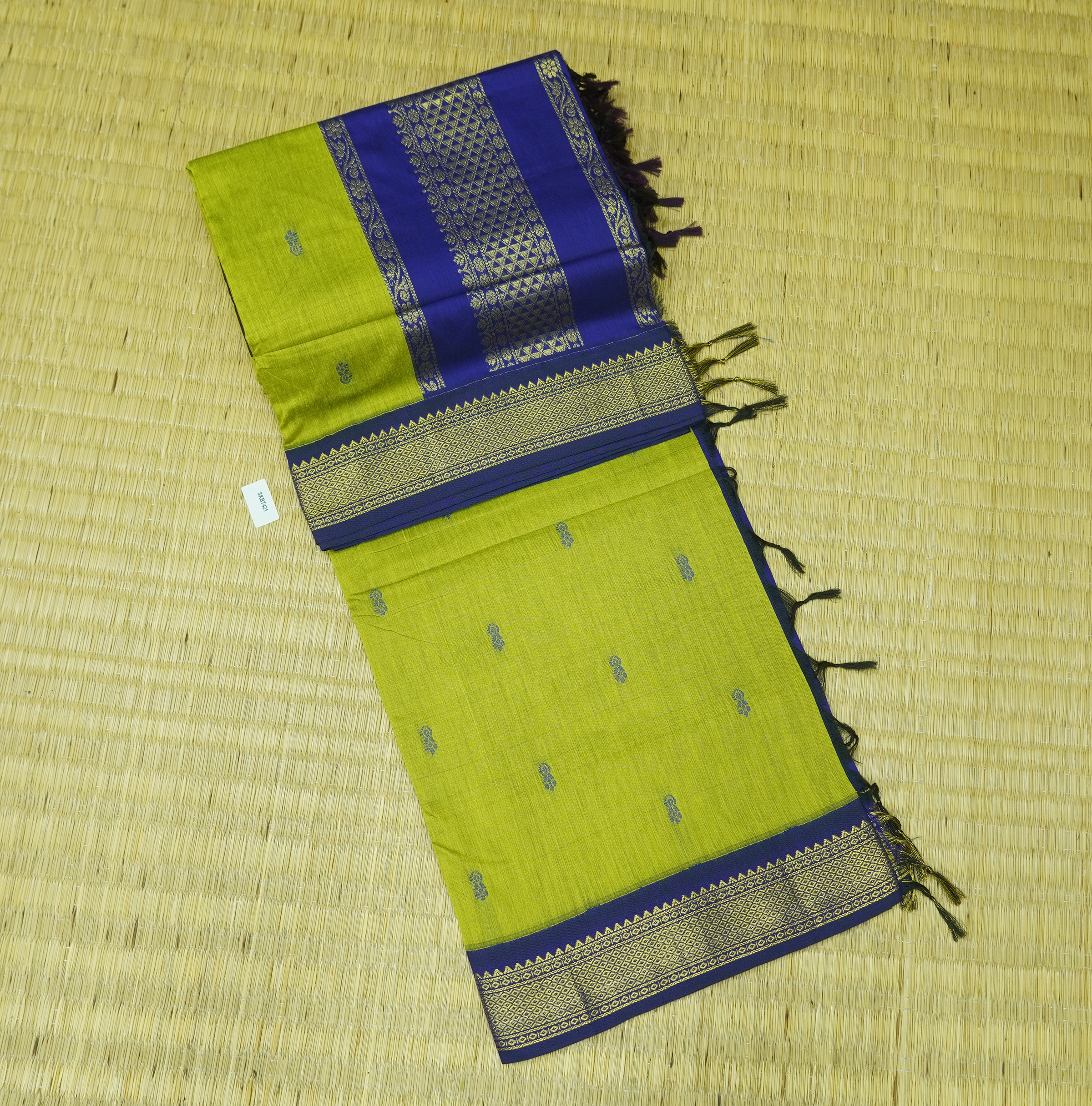Kalyani Cotton Saree is Purely a Traditional Saree. Saree will Have Thread Buttas all over the Body. Saree Comes with Contrast Pallu & Blouse.