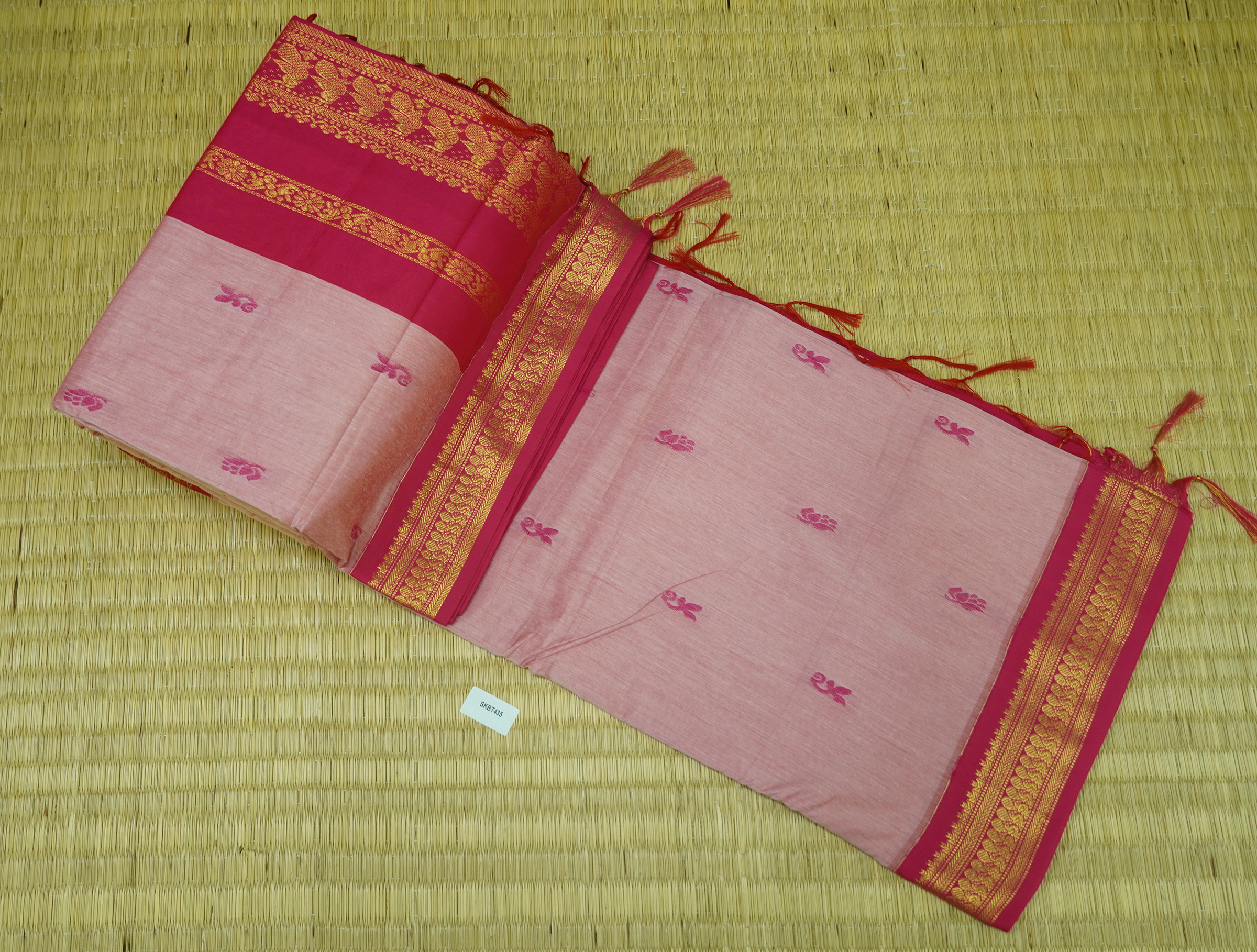 Kalyani Cotton Saree is Purely a Traditional Saree. Saree will Have Thread Buttas all over the Body. Saree Comes with Contrast Pallu & Blouse.