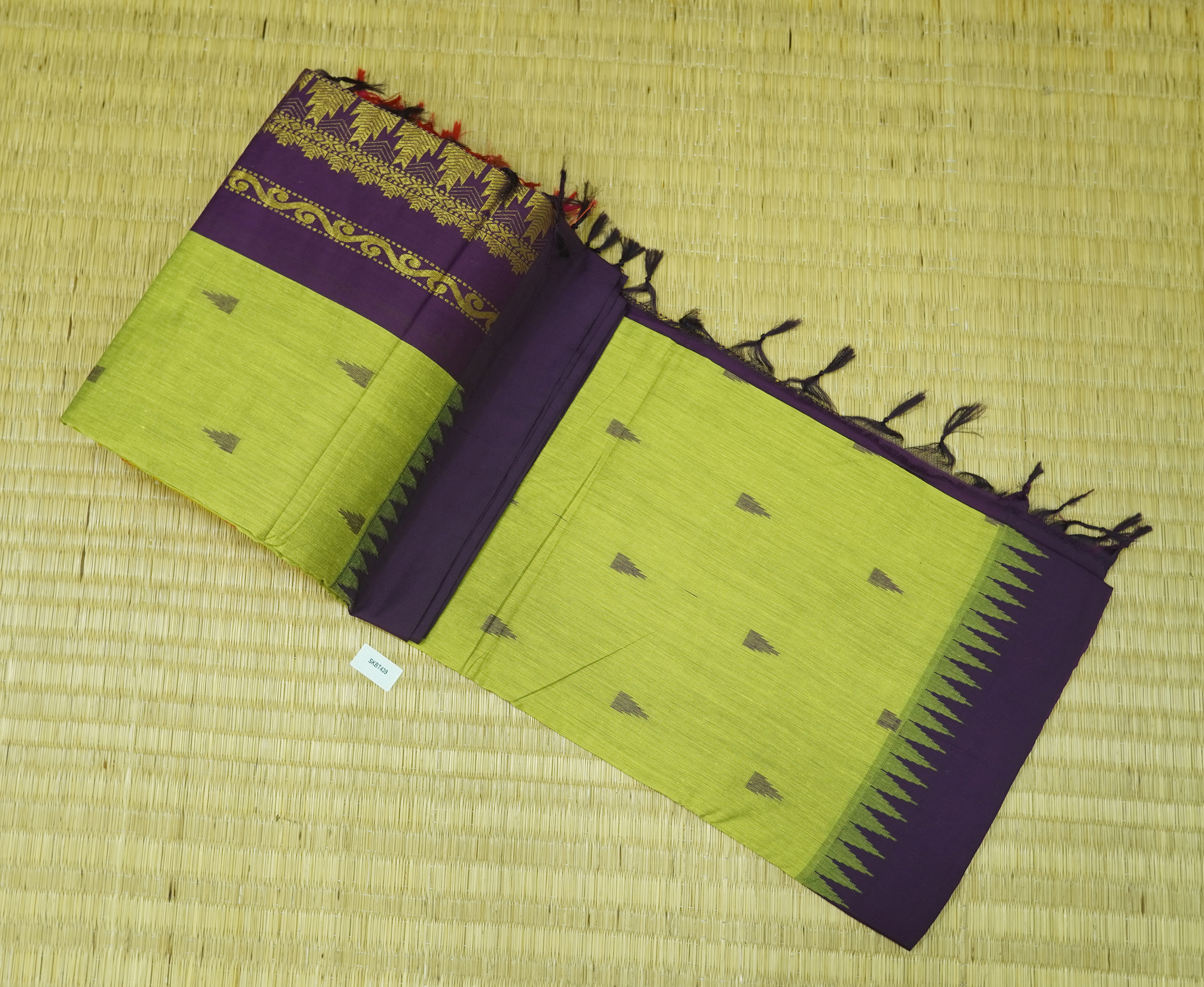 Kalyani Cotton Saree is Purely a Traditional Saree. Saree will Have Thread Buttas all over the Body. Saree Comes with Contrast Pallu & Blouse.