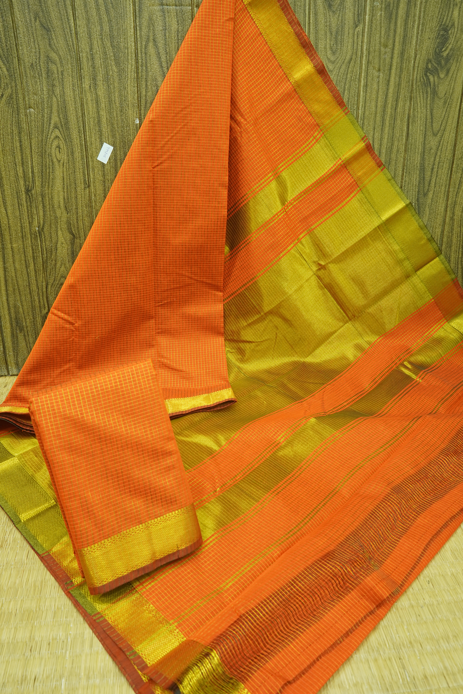 Maheshwari Checks Tissue Woven Semi Silk Cotton saree with running blouse. The Fabric is Very Soft & Smooth.