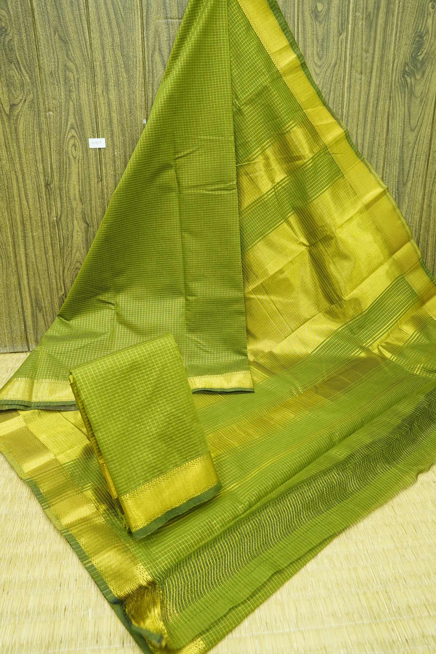 Maheshwari Checks Tissue Woven Semi Silk Cotton saree with running blouse. The Fabric is Very Soft & Smooth.