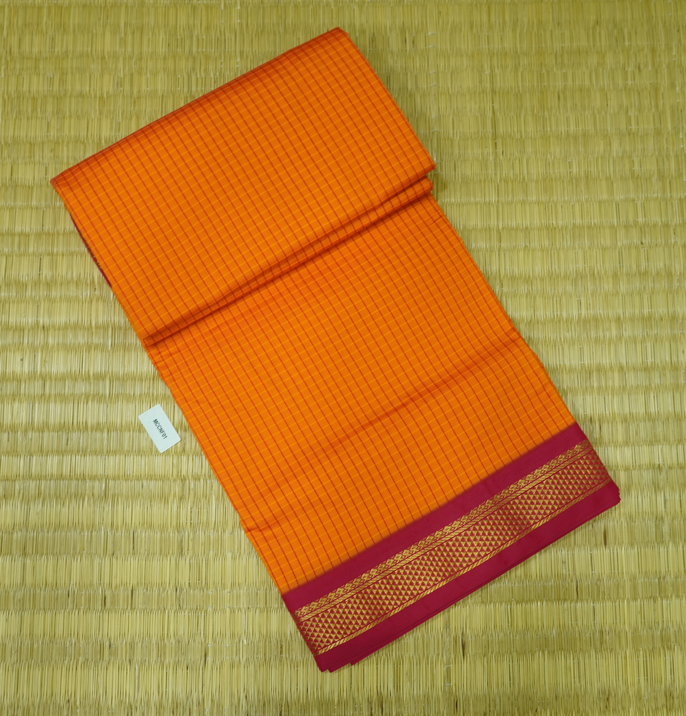 Madisar 9.5 Yards Semi soft silk saree checked with zari border