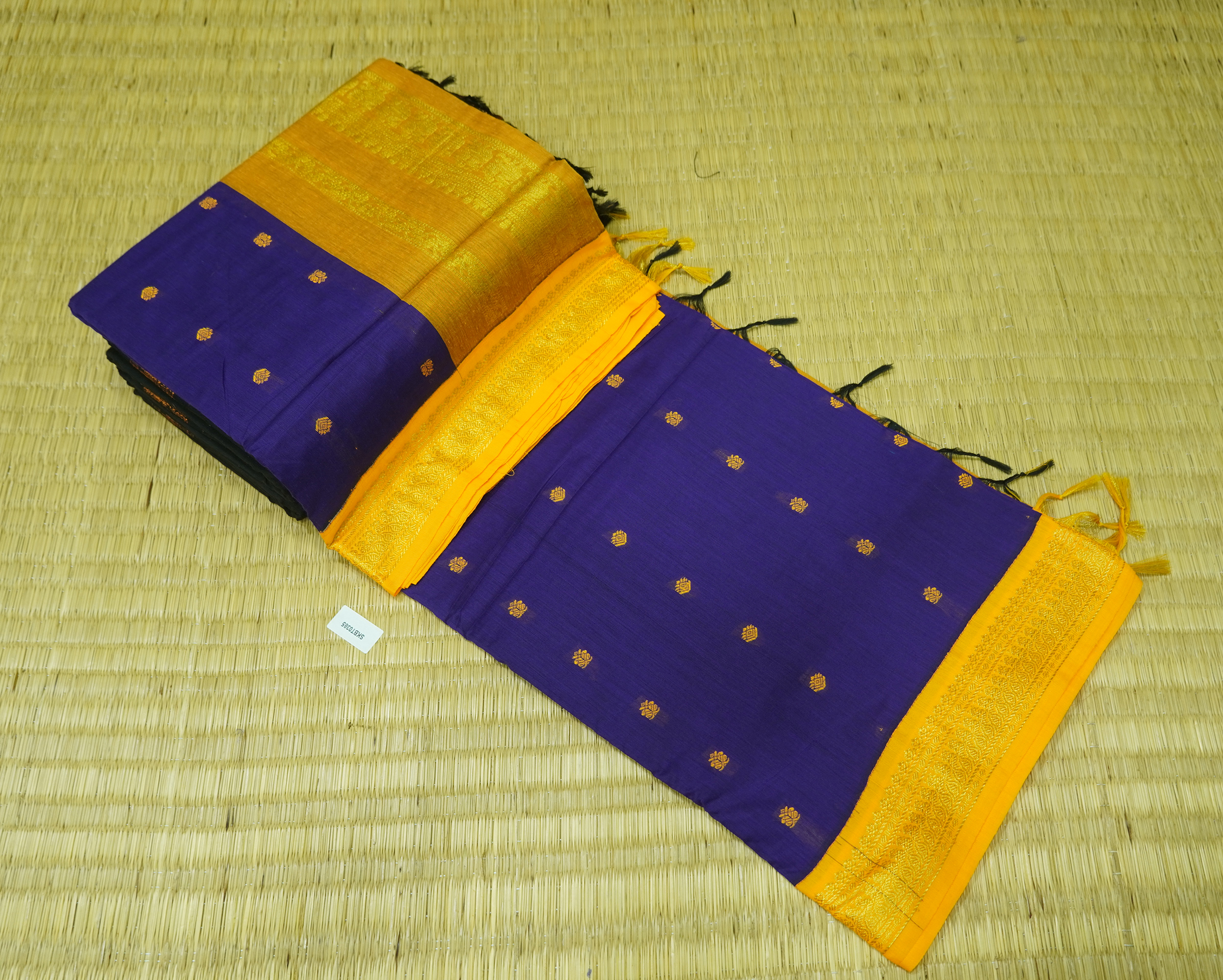 Kalyani Cotton Saree is Purely a Traditional Saree. Saree will Have Thread Buttas all over the Body. Saree Comes with Contrast Pallu & Blouse.