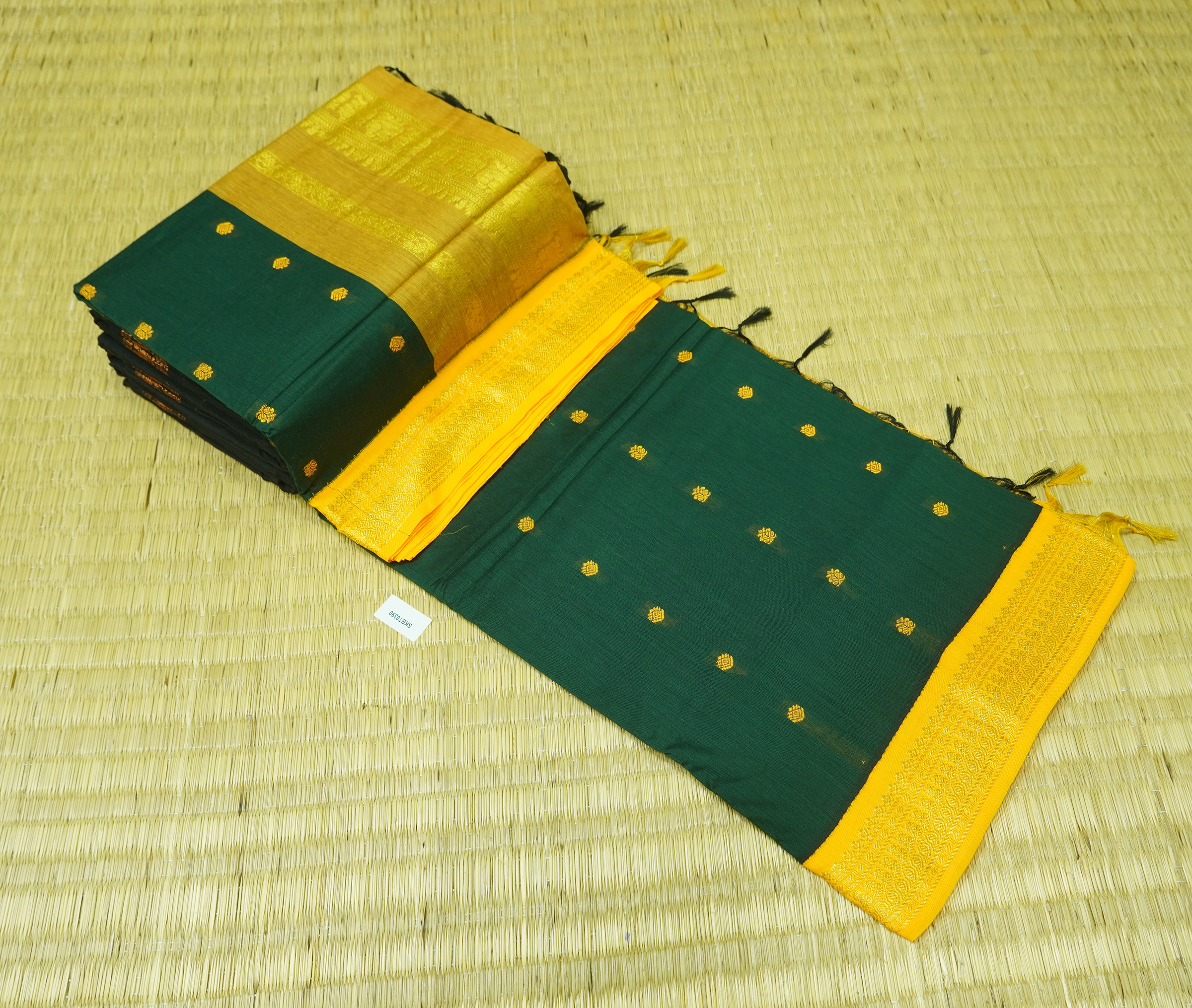 Kalyani Cotton Saree is Purely a Traditional Saree. Satee will Have Thread Buttas all over the Body. Saree Comes with Contrast Pallu & Blouse.