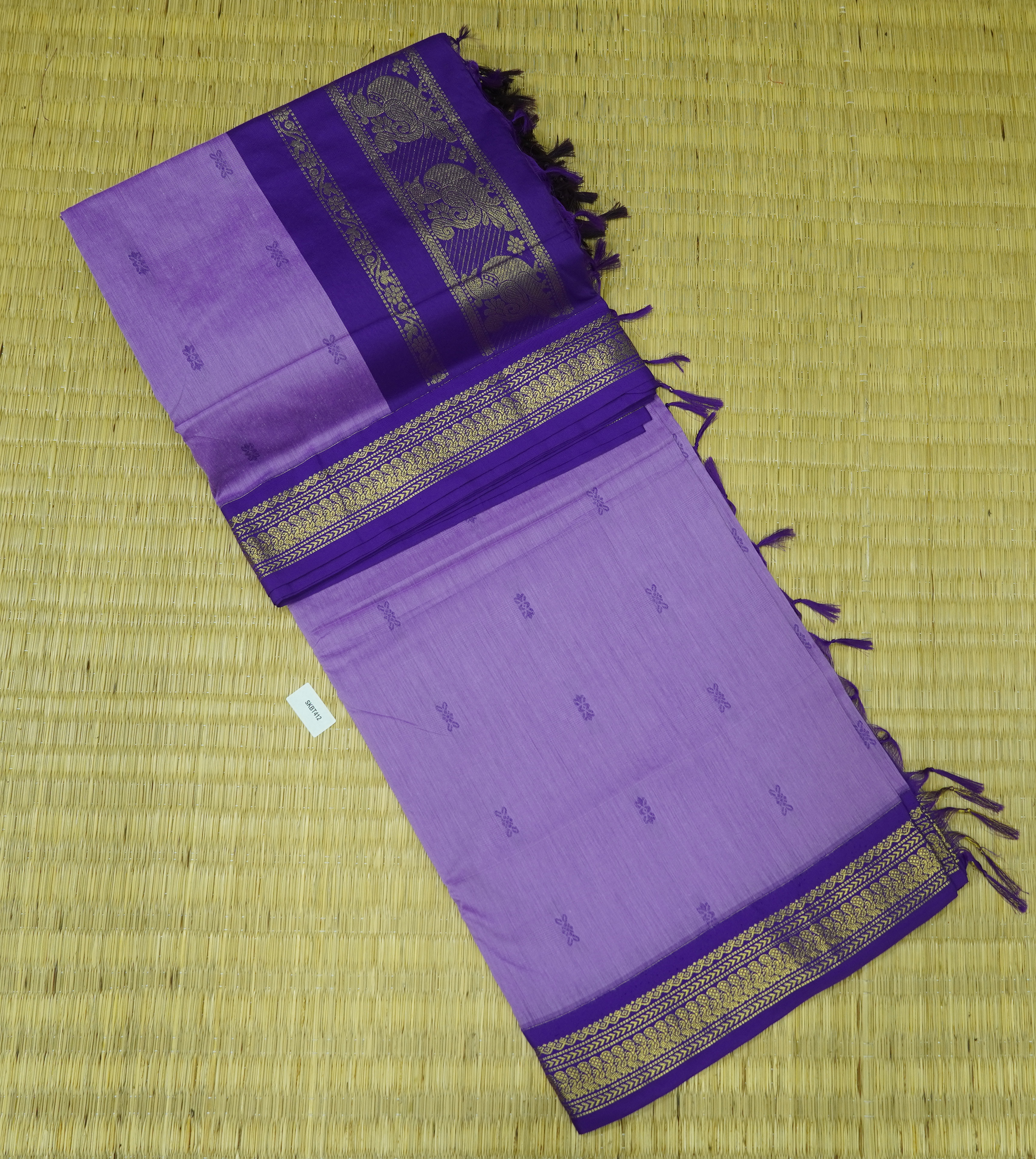 Kalyani Cotton Saree is Purely a Traditional Saree. Saree will Have Thread Buttas all over the Body. Saree Comes with Contrast Pallu & Blouse.