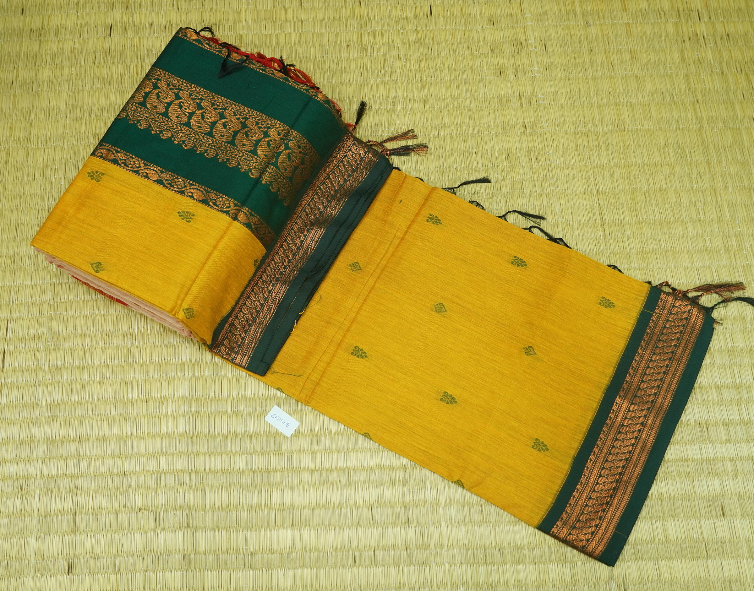 Kalyani Cotton Saree is Purely a Traditional Saree. Saree will Have Thread Buttas all over the Body. Saree Comes with Contrast Pallu & Blouse.