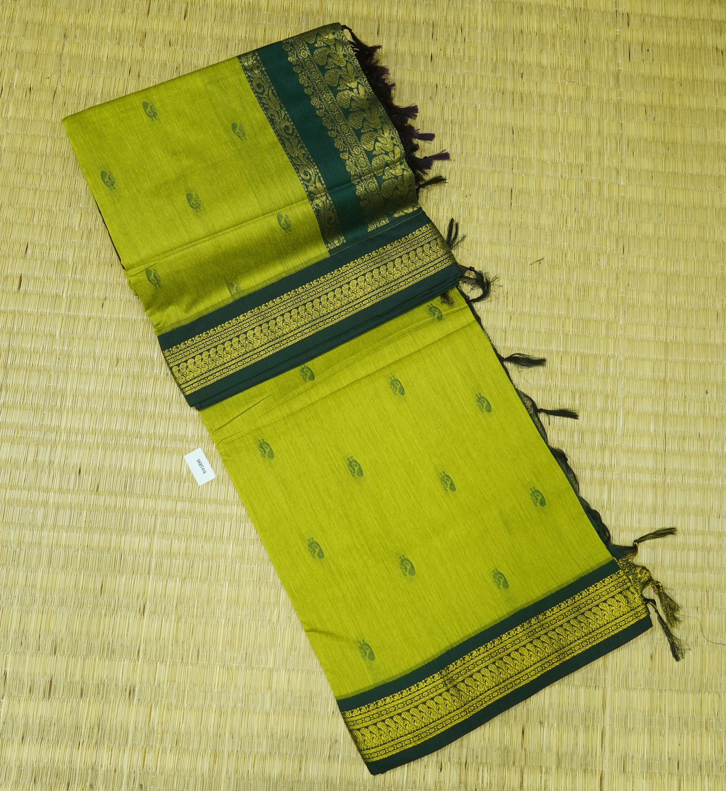 Kalyani Cotton Saree is Purely a Traditional Saree. Saree will Have Thread Buttas all over the Body. Saree Comes with Contrast Pallu & Blouse.
