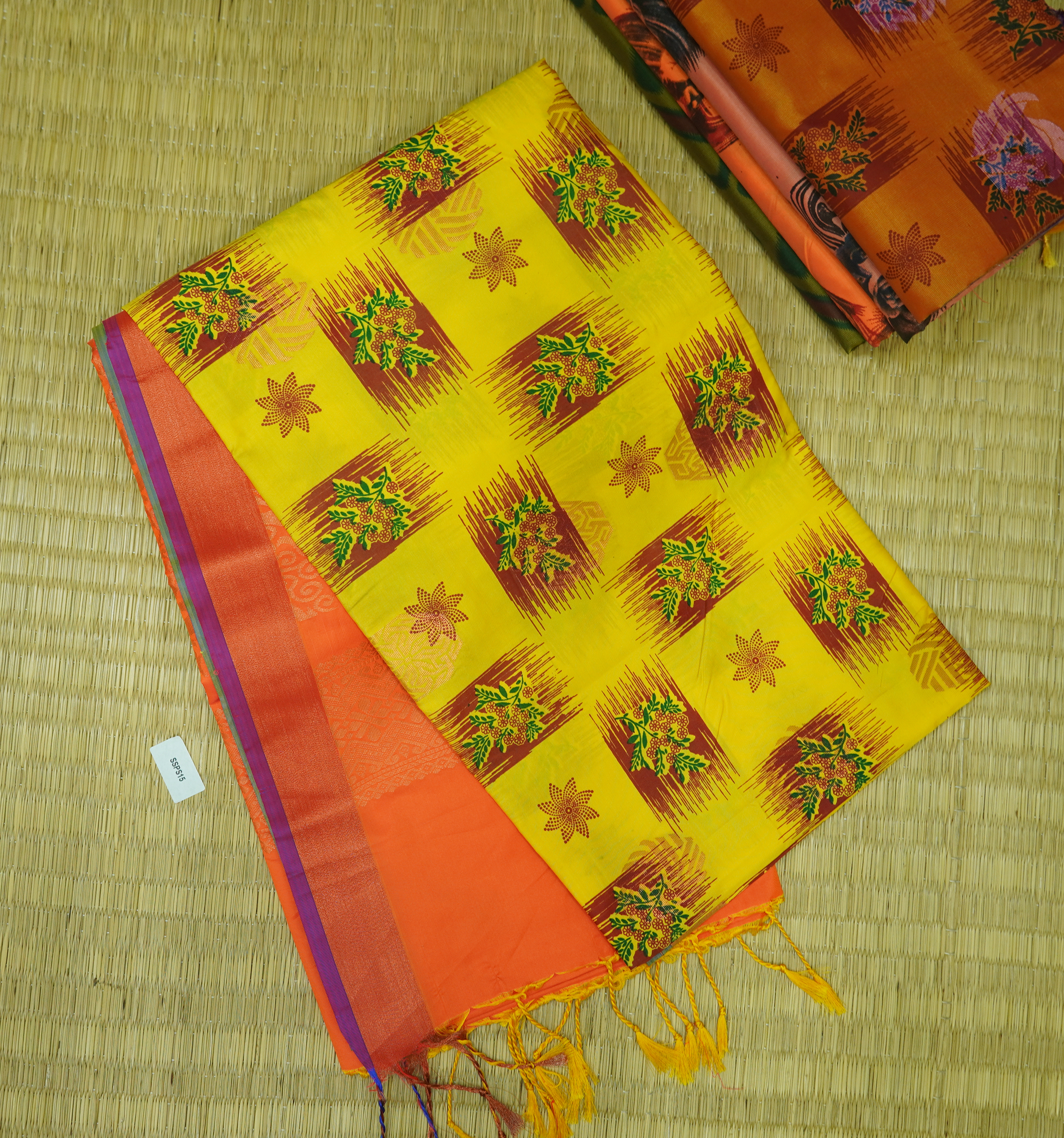 Kanchi Semi Soft Silk Saree printed saree. Saree Comes with Contrast Pallu & Blouse. These are Exclusive Sarees and Rare Collection.