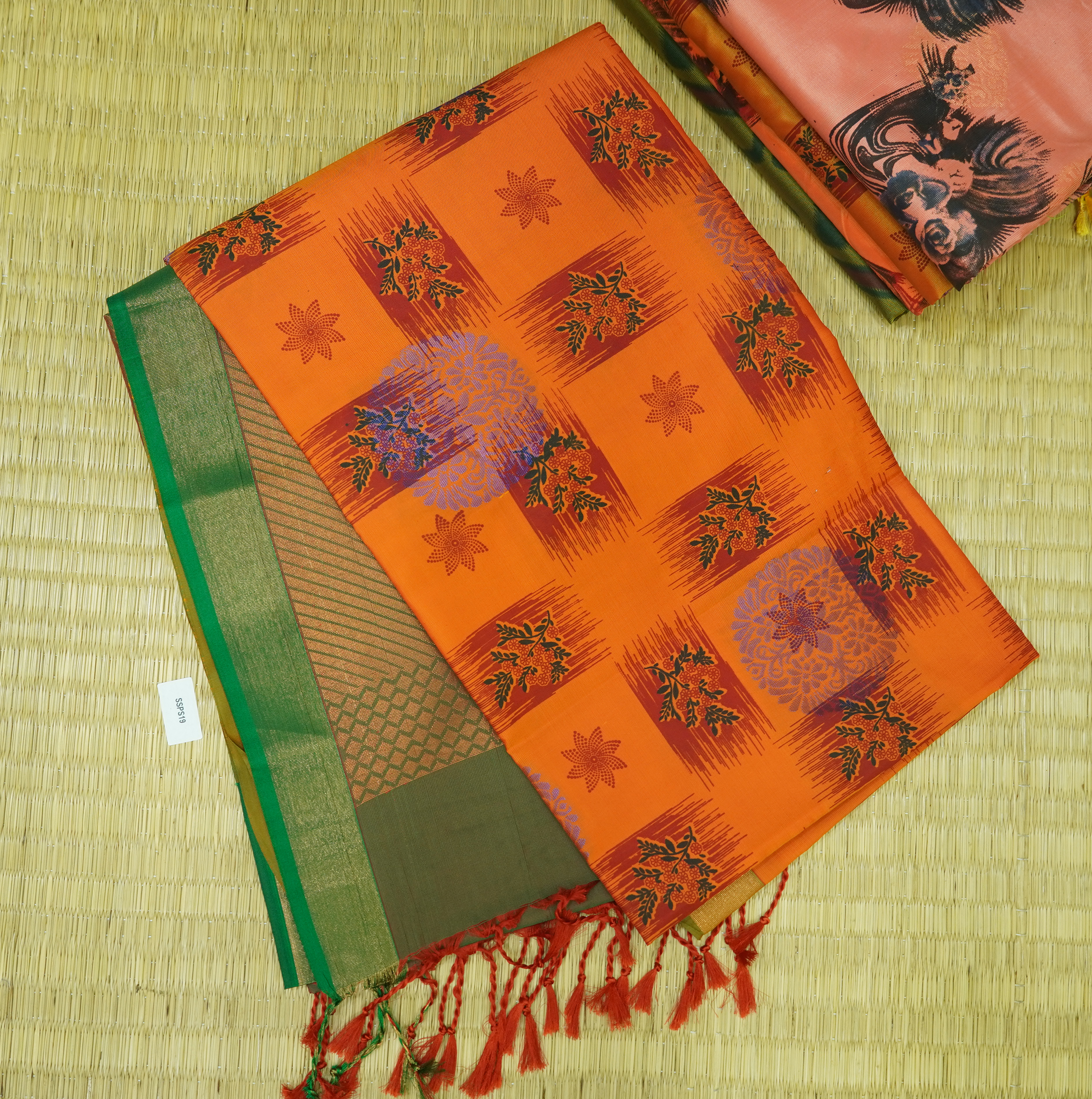 Kanchi Semi Soft Silk Saree printed saree. Saree Comes with Contrast Pallu & Blouse. These are Exclusive Sarees and Rare Collection.